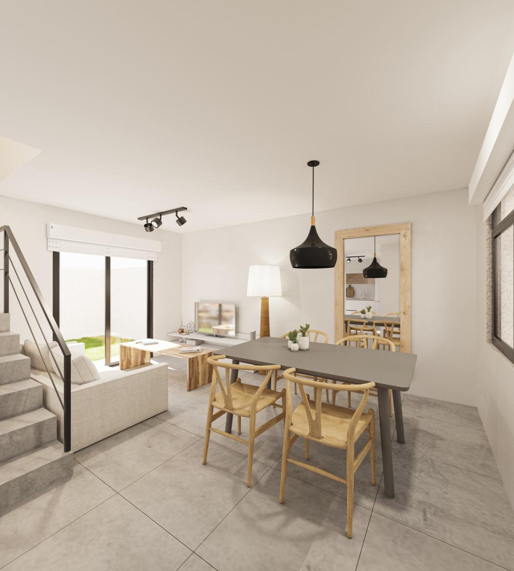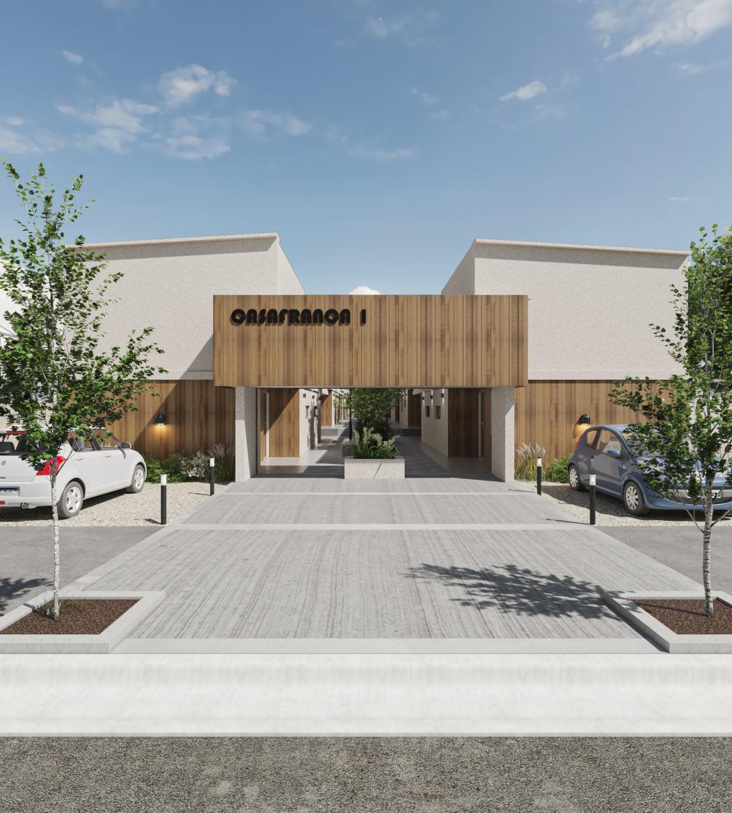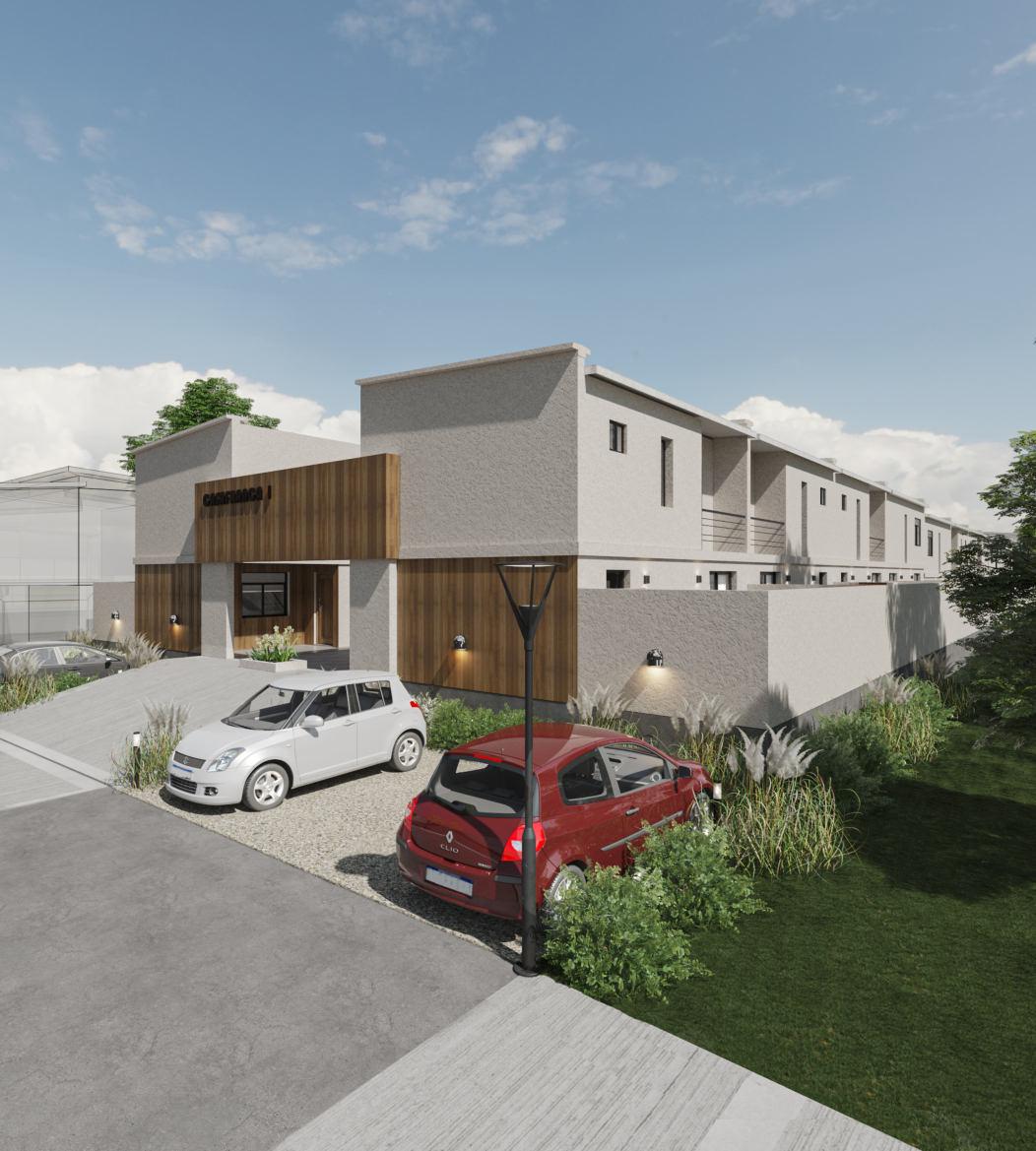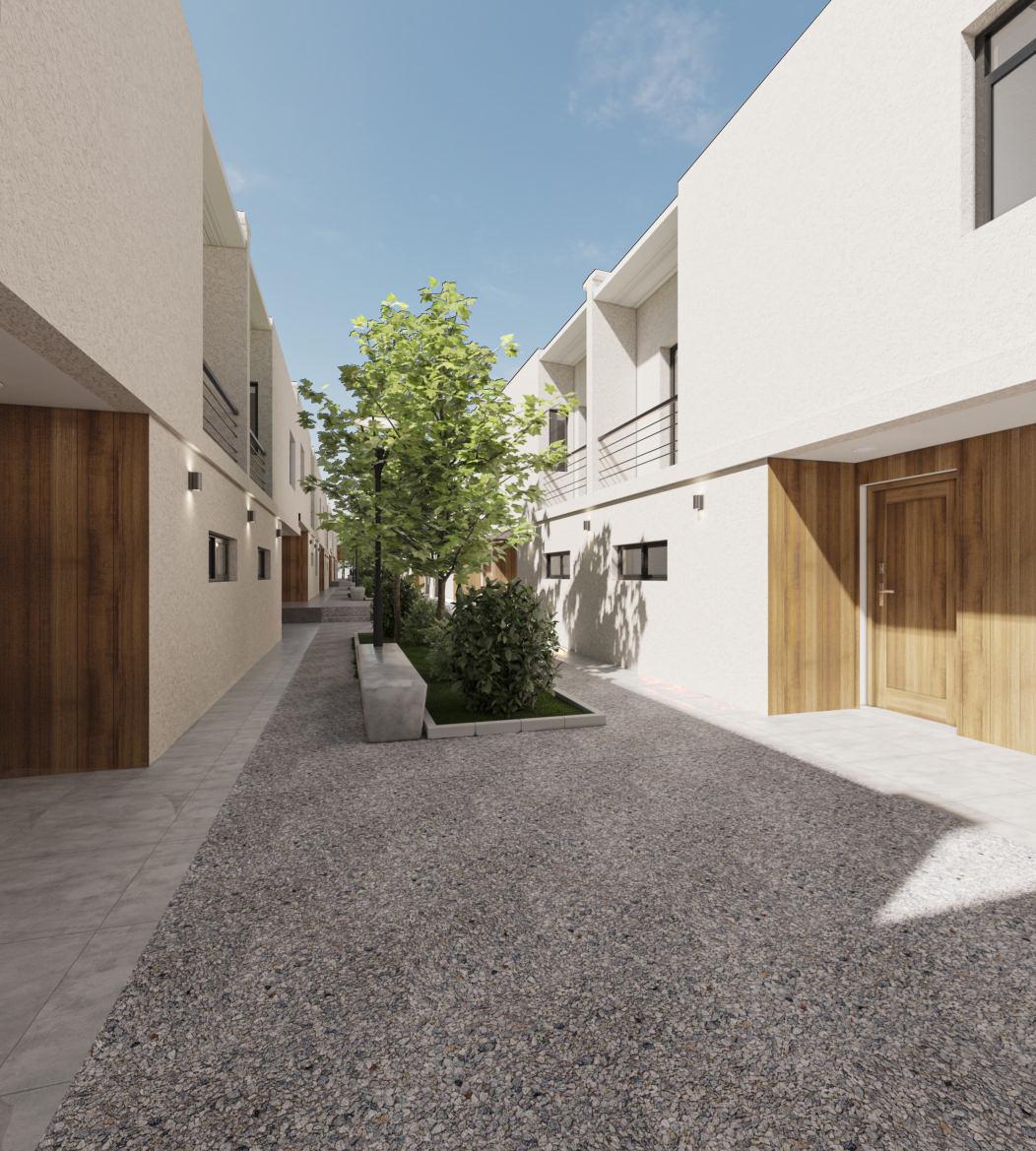 Se trata de un conjunto conformado por 20 viviendas de dos y tres, desarrolladas en dúplex, adosadas en dos tiras empleando un sistema constructivo tradicional.