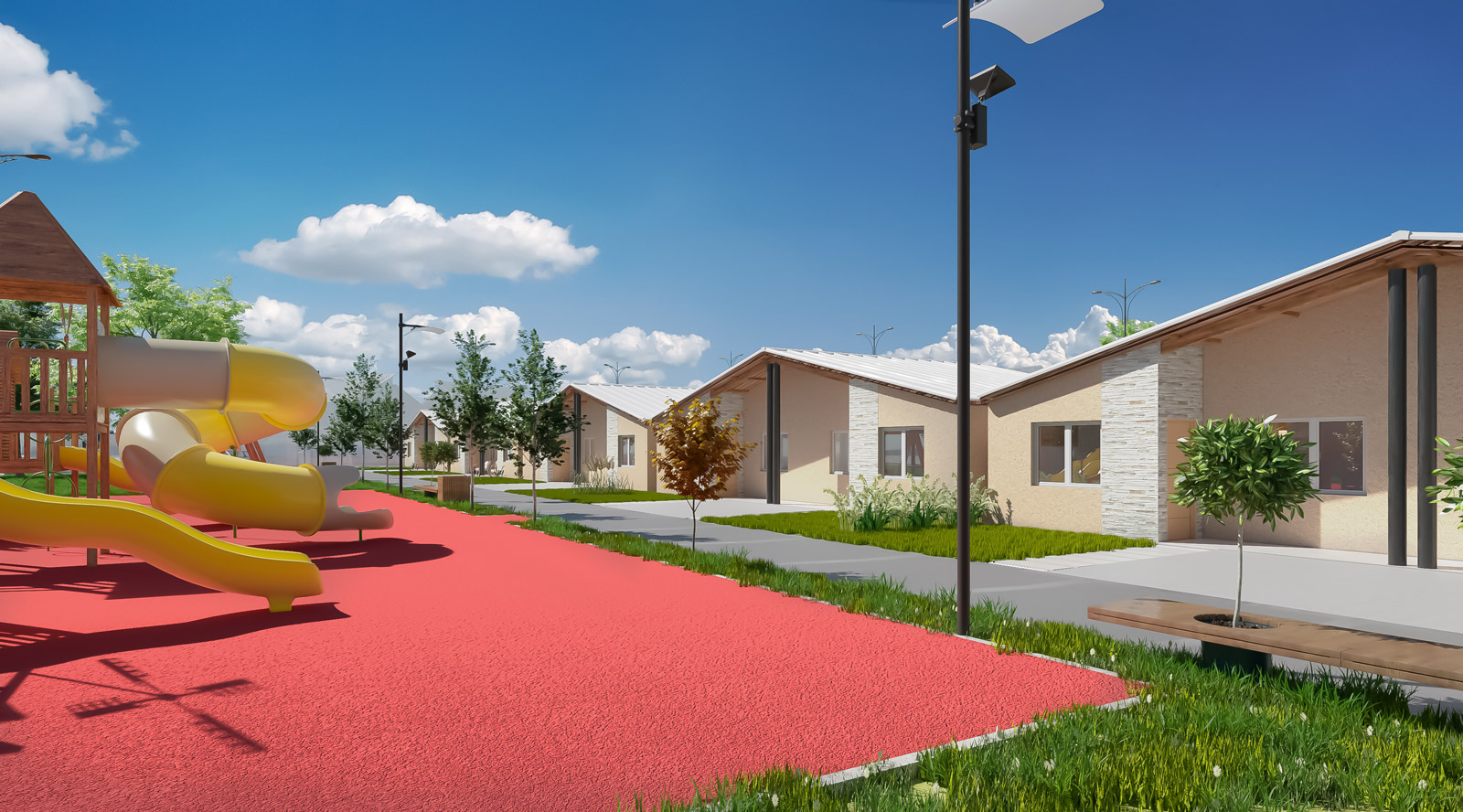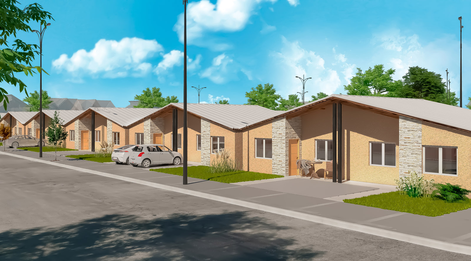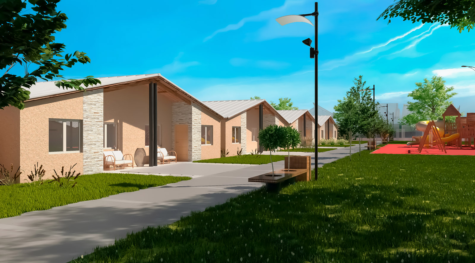 Las áreas comunes contarán con caminería iluminada, espacios verdes y zonas de recreación, comprometiéndonos con el consumo energético responsable, pensando en energías renovables, siendo sustentables tanto para el medio ambiente como para la economía de la comunidad.